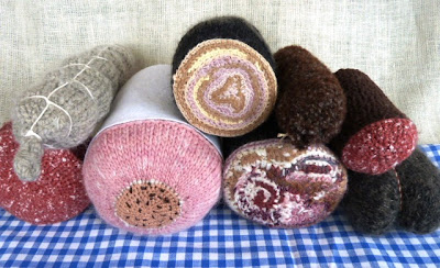 By now, the incredible amimono (a word that encompasses both knitting and crochet) vegetables of Japanese crafter Jung-Jung have been showing up on blogs and pins for months. As with the work of Kyoko Yoshikawa, these pieces take food knitting to an entirely new level: of skill, of delicacy, of what is possible to accomplish with a hook and needles and yarn. On the one hand, they're incredibly life-like. On the other, their lace-patterned leaves and variously-textured surfaces artfully translate life into sublimity.